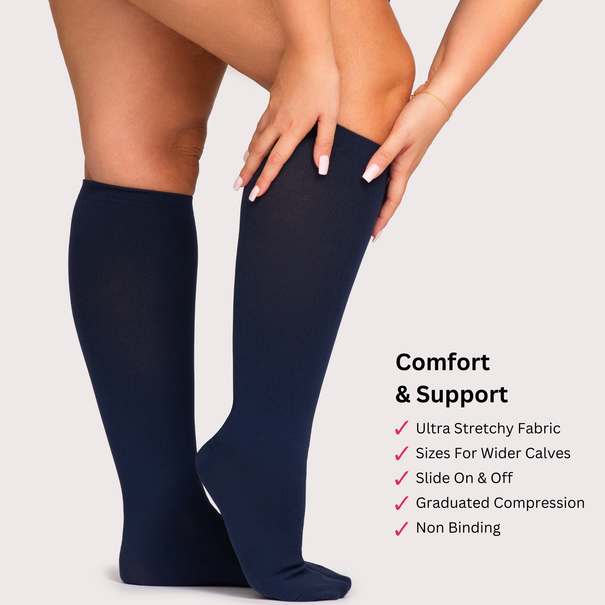 Managing leg swelling doesn't have to come with constant discomfort. Unlike typical compression socks that can be too tight and cause additional pain, ours are crafted specifically for wider calves.